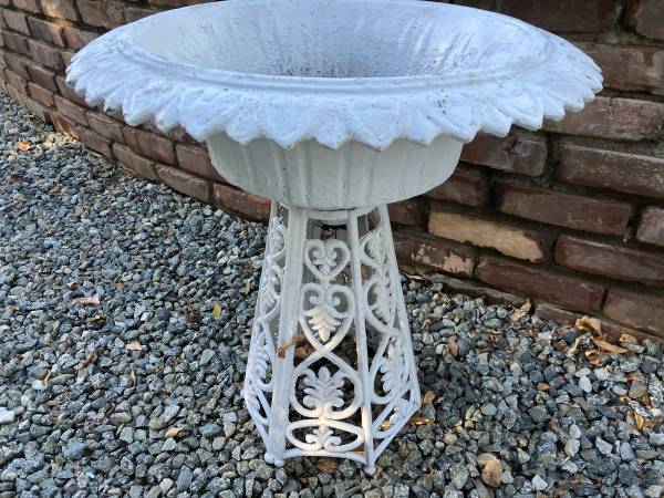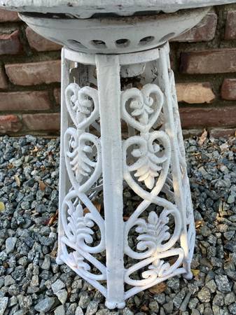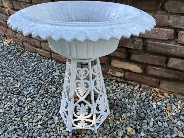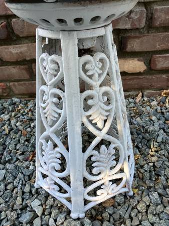 VINTAGE CAST IRON PLANTER VERY DECORATiVE TWO PIECE. TOP + BOTTOM GREAT CONDITION MEASURES 22 Inches tall 21 Inches wide