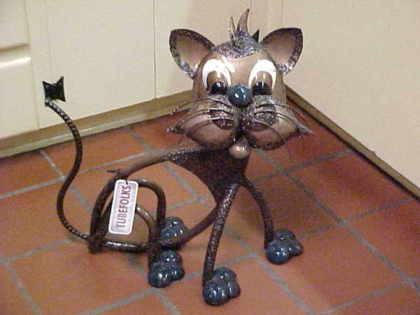 Handmade by an Australian designer that uses recycled steel whenever possible. Very durable. Decor can be used inside or outside. 20" tall 19" width 10½" depth $75.00 Pick up only.