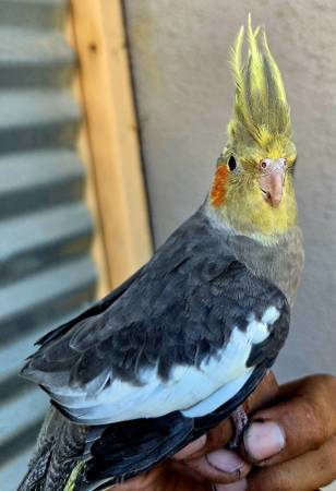 This cockatiel is from our Euro cockatiel blood line. So it is bigger than your typical sized cockatiel. It was handraised since it was just two weeks old and is super comfortable being held, especially by my 12-year-old son. It loves to cuddle and enjoy rides on your shoulder.
