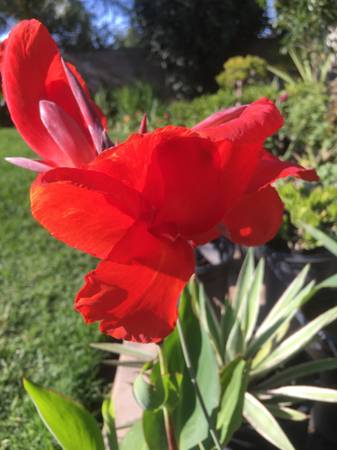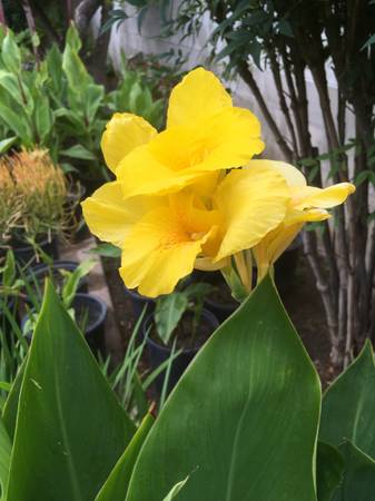 Potted in 5 gallon buckets and easy to transport, these blooming plants transform yards into tropical landscapes. They grow agressively, even in full sun and bloom early spring to late fall.