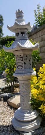 Beautifully detailed Chinese /Japanese lantern made of cement measures 52 inches high.