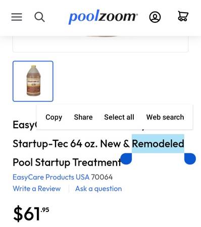 Hello..we have a unopened 64.0z..bottle of Tartup tec easy care proactive treatment for all pools..for swimming pool.