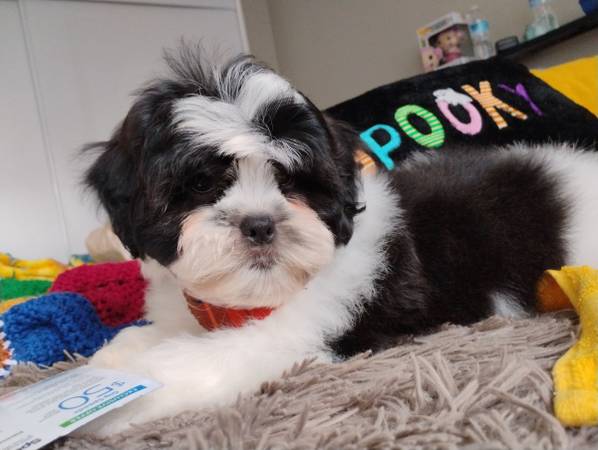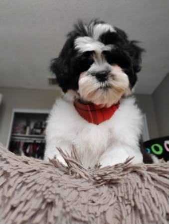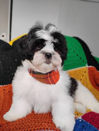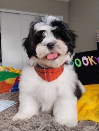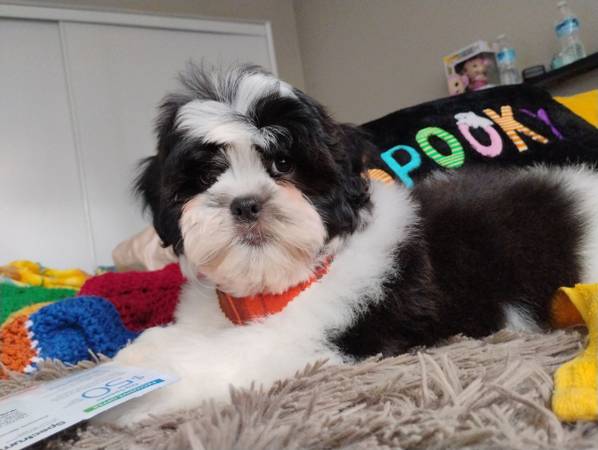 Male shih tzu puppy. Last of the litter to find a home. Turned 8 weeks old on September 3rd. Has two sets of shots. Potty trained on puppy pads. Loves kids and is used to big dogs. Ready to go now....