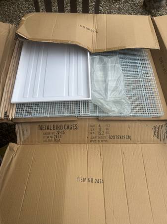 I have 2 brand new cages in a box 30X18X18 comes with food containers and perches for $75. I have the same size cage used for $50. They are $119 plus tax in any pet store 818 six two six 2045