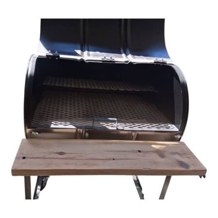 Mobility & Convenience: The inclusion of a wheeled cart, as seen in the image, makes the drum smoker easily transportable. A side shelf (like the wooden one pictured) provides valuable prep space for food and tools.