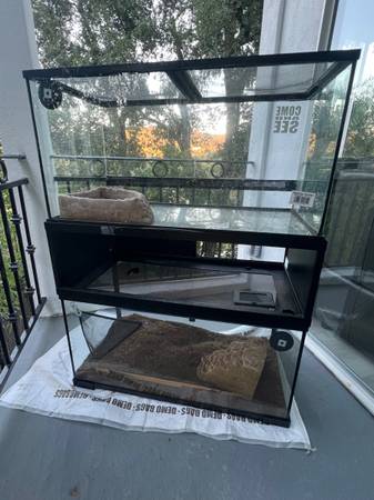 2 40 gallon front loading black Full Glass Reptile Terrariums with assembled extender.