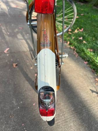 Standard equipment includes 3 speed Sturmey Archer internal rear Hub with trigger control, upgraded with Brooks leather Saddle B-67, shock stop rubber grips, rear light, rear bike rack and original Pletscher kick stand.