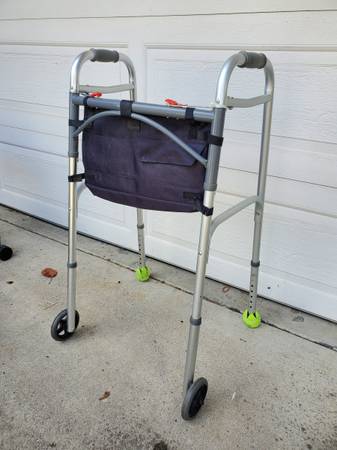 Fording Walker, $20 - $35 Each Drive Medical Deluxe Two Button Folding Walker, $35 Model: HX5-9JP, 10210-1 Color: Silver Features: Adjustable and Foldable, 5-inch wheels Sunrise Medical Guardian...