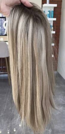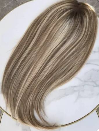 100% Human Hair Ash Brown Light Blonde Highlights Wig for Women