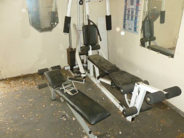 Parabody 400 workout center, includes in addition an incline board, weight rack, two extra bars and two dumbells