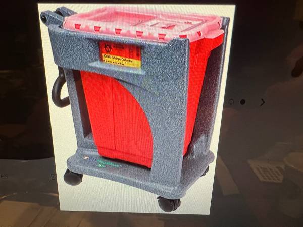 Medical Offices - We have this Basic Medical Trolley for Sharps Collector/Container. Trolley only, no container included. Perfect for a doctor’s office, hospital or medical center. It’s in like new condition and holds a 34 liter/9 gallon container. Compare online at $386 to $1136 plus tax and shipping! Thank you for looking and Happy Shopping!