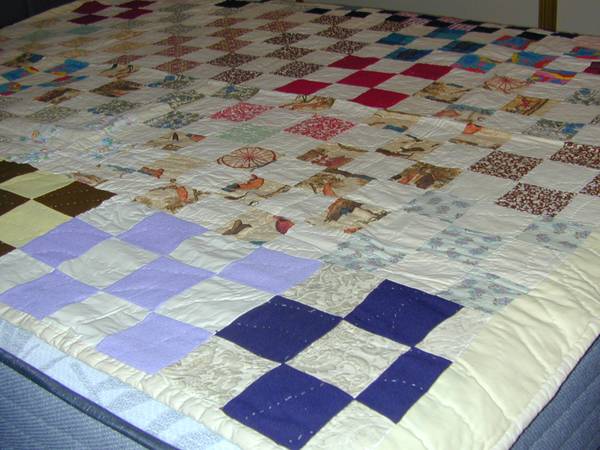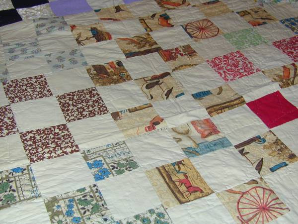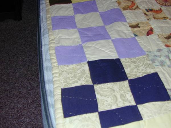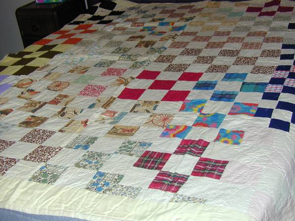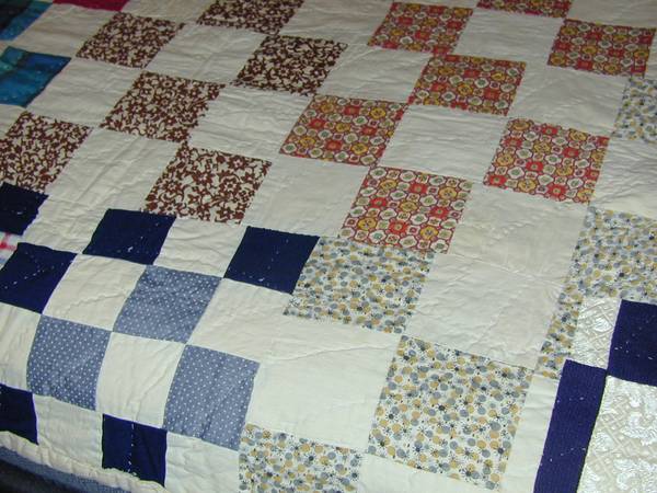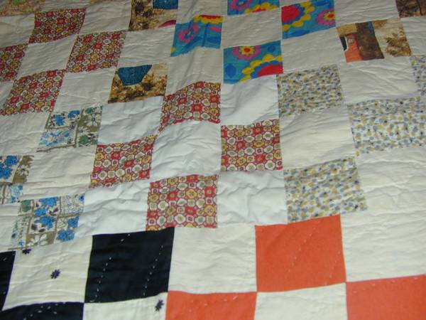 Vintage Cotton Patchwork Quilt that my Grandmother from North Carolina made for me. Nice weight, Colorful and has a Cotton Lining. Approximate size is 80 " long & 64" wide.