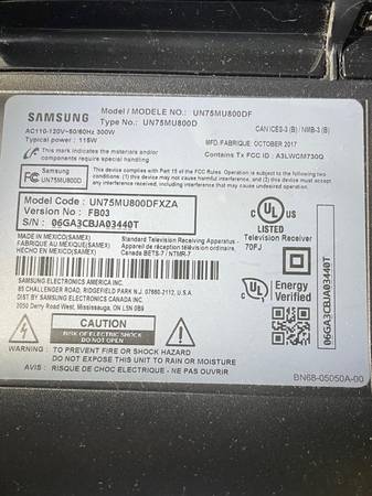 75" Samsung UHD 4K flat Smart TV, MU8000 Series 8 also available for sale $595 with TV mount.