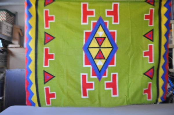 2 Large Blankets $ 12 ea Please see photos: we have 2 Green: 37" X 45" Aztec: 32" X 46"