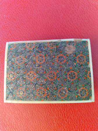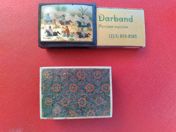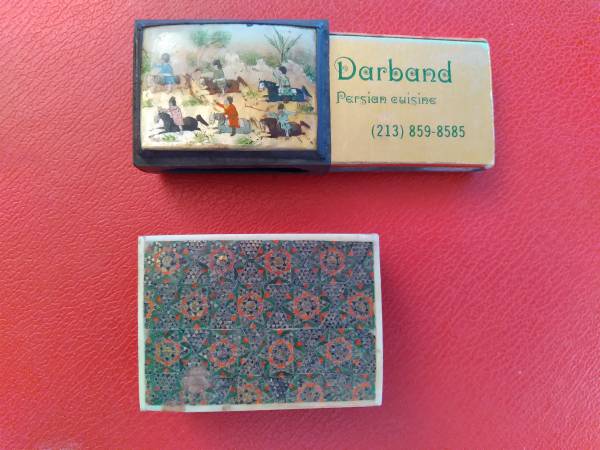 2 Persian Mosaic Inlay Wood Miniature Matchbox Holders