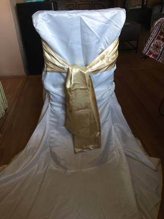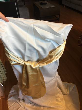 4 CHAIR COVER Wedding Banquet Party Reception Decorations White With Gold Bow $8 each