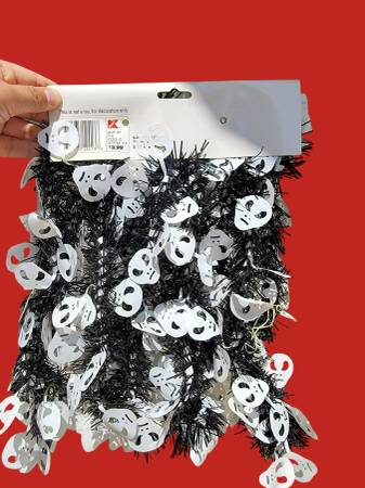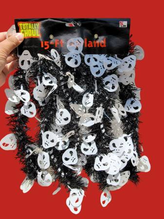 Totally Ghoul Black Garlands with White Ghouls for Halloween Decoration around your covered outside windows, doors, covered porch, inside your house.