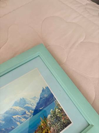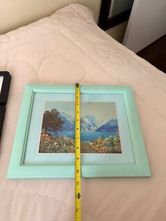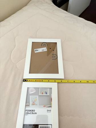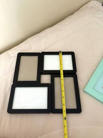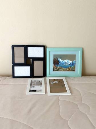 The green one is used. The rest are new but have minor scratches/defects. The black frame’s stand was torn off so it can only be hanged. Everything for $5