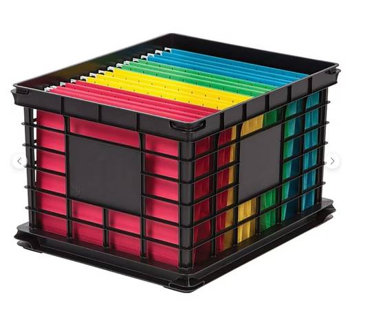 Staples Brand Black Stacking Storage Crates for files, organizing items, books and so much more.