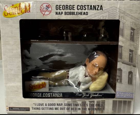 Seinfeld George Costanza New York Yankees nap bobblehead. Brought it home from the Yankees game from last August. Mint condition. Take a look at my other items I posted as well. Happy shopping. 😊