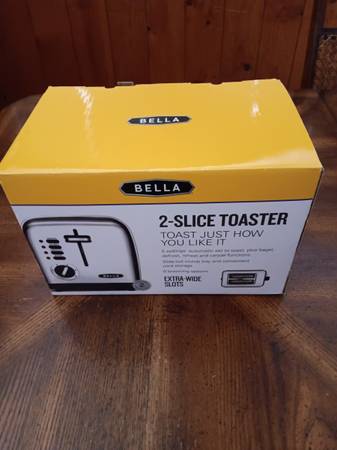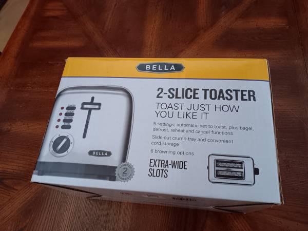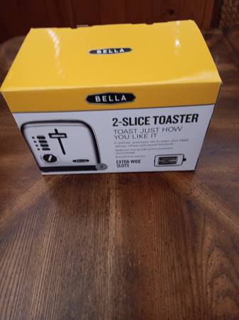 Brand New Bella 2 Slice Toaster. 10" H, 5" W, 8" H.