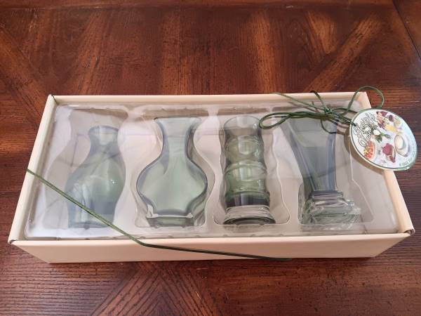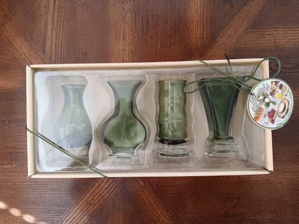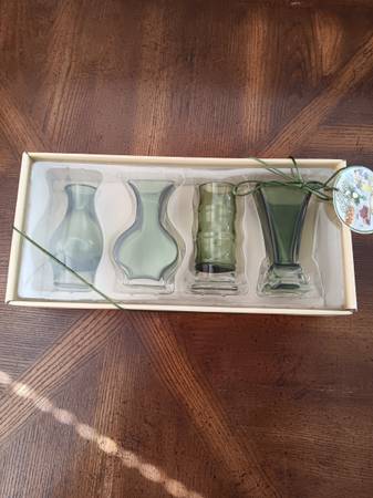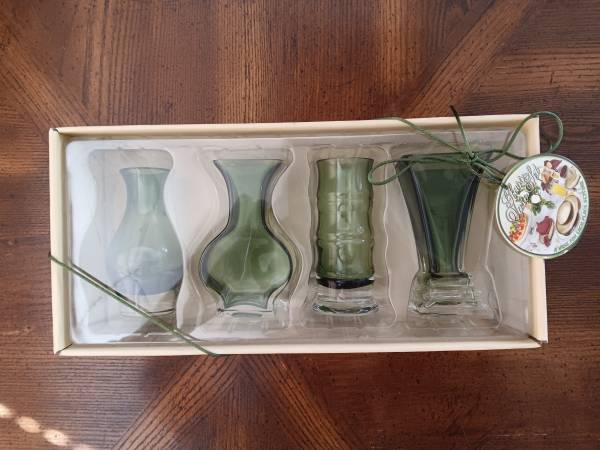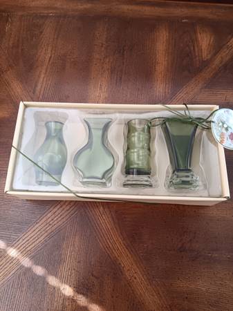 Brand New Glass Flower Vase set of 4. Green, H 5".