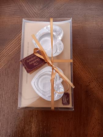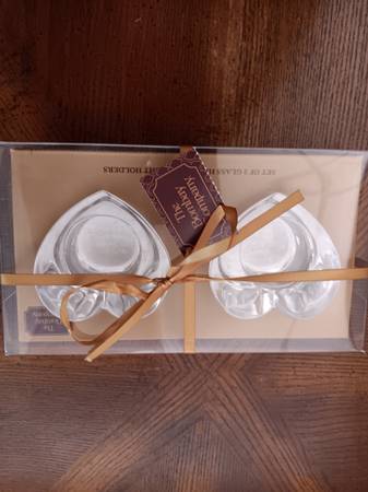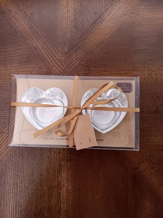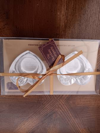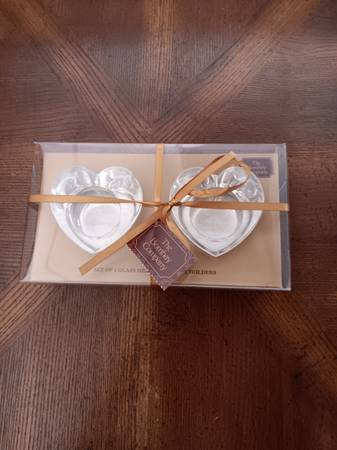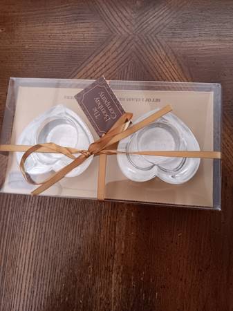 Brand New Set of 2 Glass Heart Tealight Holders. L 3.3" x W 3"x 1.6" H. $15 for each set of 2.