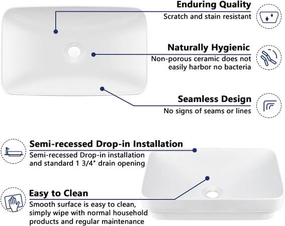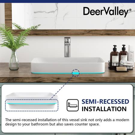 Vanity Bathroom modern Vessel Sink - Semi Recessed Ceramic 19'' x 12'', Rectangular White Brand: DeerValley The product is brand new, Unused and still inside its original box. We just bought the...