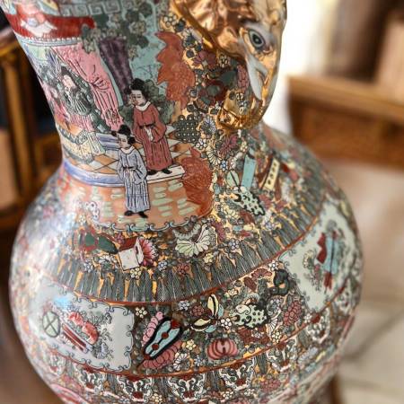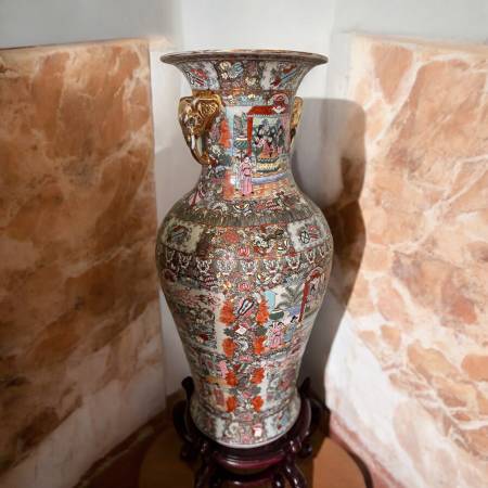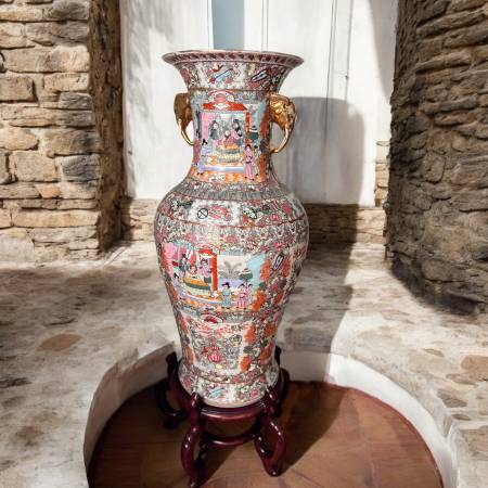 Up for sale is a stunning vintage pair Canton Famille Rose vase, in excellent condition. This piece is a true work of art, featuring intricate details and vibrant colors, making it a perfect addition to any collector's display or luxury home decor.