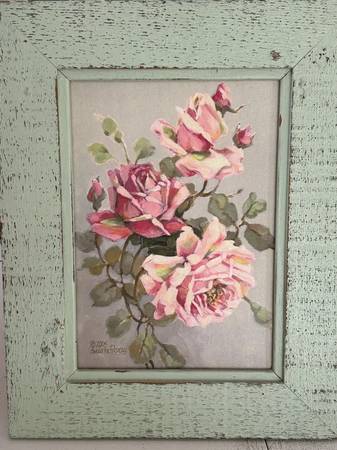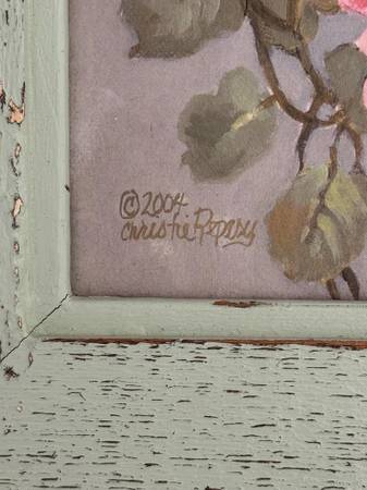 This is a giclee print by the extremely talented Southern California Artist Christie Repasy named “SUMMER SUNSHINE” (left) that features such beautiful pink roses and rosebuds. Christie no longer produces this print, so this is a very rare find!