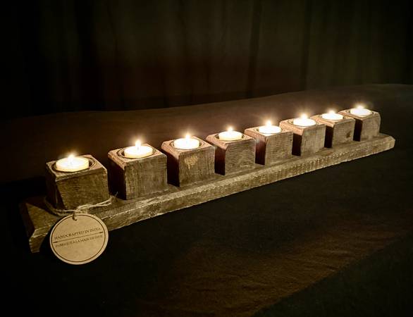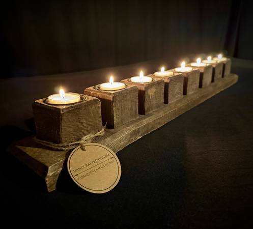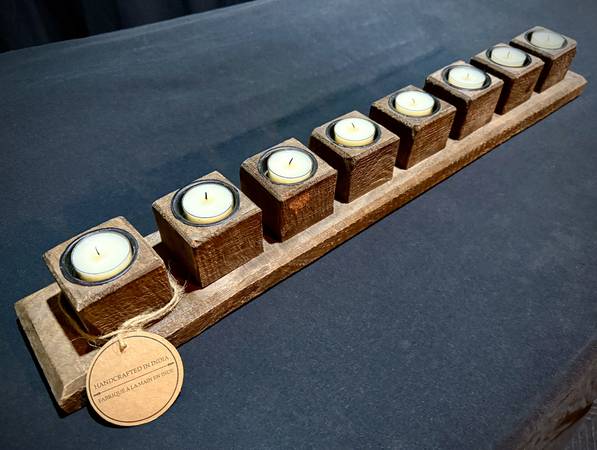 Here is a BRAND NEW gorgeous rustic / vintage 8-candle or tea light holder. PERECT for Special Occasions or any celebration or simply for mood lighting. Gorgeous array (see photos). Very sturdy and solid reclaimed wood that was never used. One of a kind and hard to find something this vibey and sweet. A great addition for any home.
