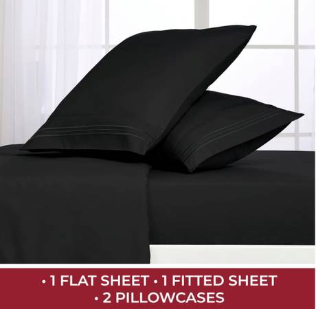 4 Piece Set Includes: 1 flat sheet 102"x105", 1 fitted sheet 78" x 80", 2 pillowcases 20"x 40"
