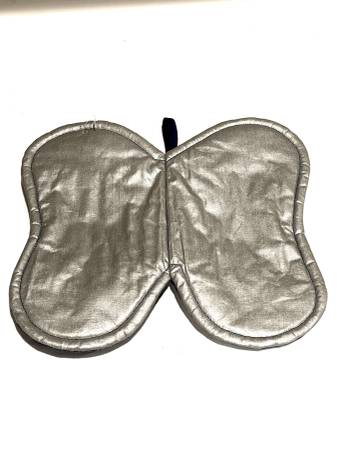 They open into a large 9.25" X 8" butterfly shape that make it very easy to grab hot items right out of the oven. When they hang from the black (or brown) hook at the top corner, they display the pretty cowboy fabric and fold in half, so they only measure 5.25" across when on display. These are machine washable. Super cute and not found in any store!!