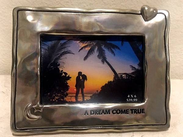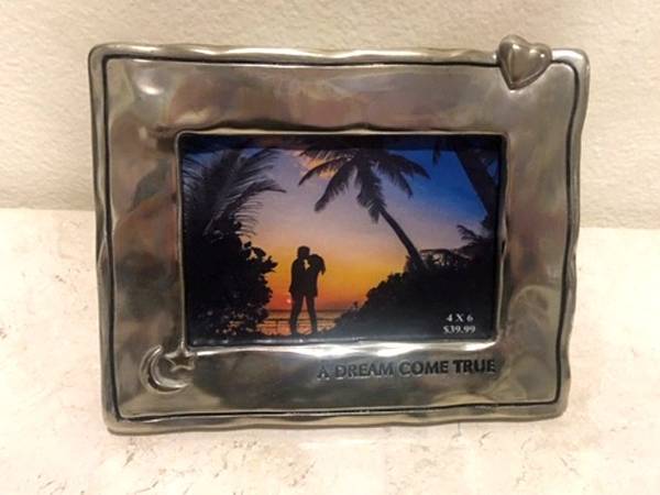 This frame measures 7.75W X 6"H in total and holds a 4 X 6 picture. This frame has been used and shows some light scratches on it. Heavy and sturdy metal. Paid $40 for it originally. Selling for $15...