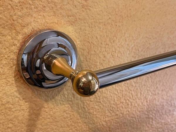 Towel bars and matching toilet paper holder (silver chrome with gold accents)