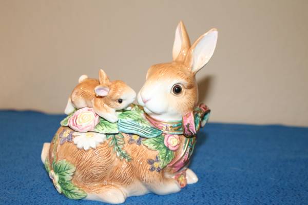 New! Fitz & Floyd - Lidded Box - Woodland Spring Mother/Baby Rabbit...
