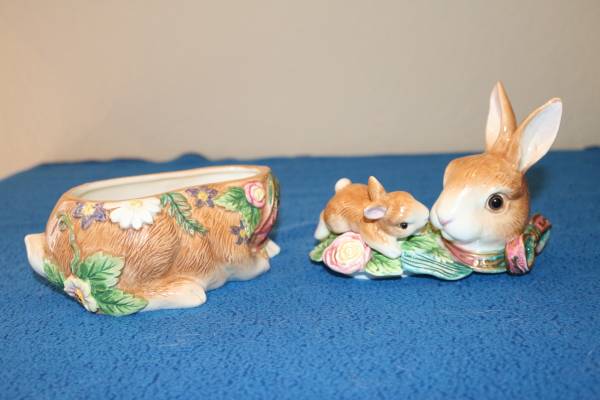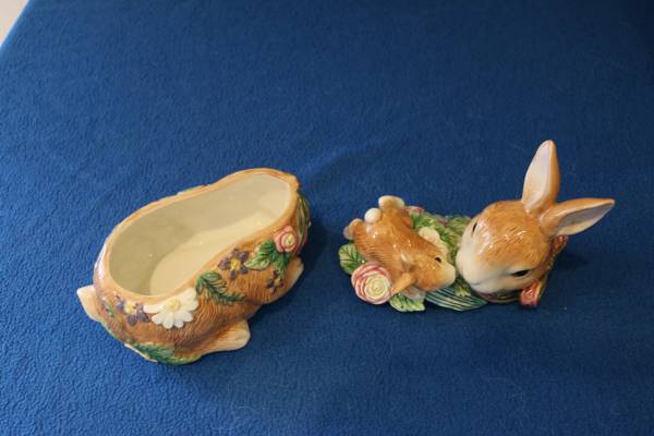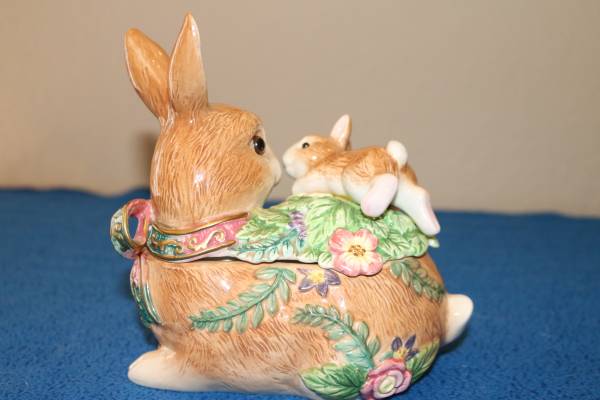 New! Fitz & Floyd Woodland Spring - Mother/Baby Rabbit Bunny Lidded Box Fitz and Floyd 1998 Lidded trinket box / figurine Perfect for Spring and/or Easter Cute Mama rabbit with baby rabbit...