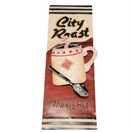 Perfect decor for your coffee station CITY ROAST ...ALWAYS HOT COFFEE SIGN HOME DECOR METAL TIN -Measurements: 13"H×4.5"W English Toffee