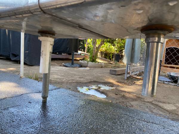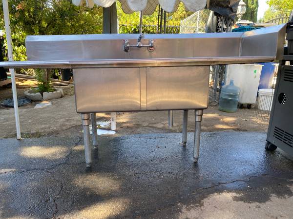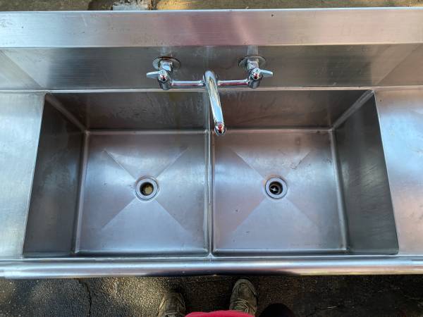 Nice clean two basin commercial sink for home garage backyard business commercial kitchen. Comes with faucet and drains. $599 with free local delivery AFTER payment . Cash only!