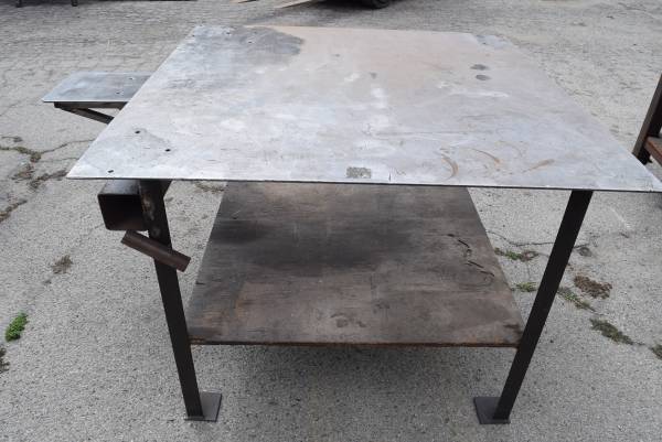 HEAVY DUTY Load Welding Sawing Table Steel Workbench w/ Storage Shelf + Lower Vise Table 4ft x 4ft x 36-1/2" Tall Vise Table 20" x 10" x 30" tall Shelf Height 14"