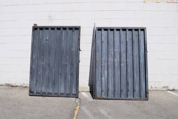 HEAVY DUTY STEEL DOORS GATE SECURITY TRASH DUMPSTER Door size 49" wide ( with Hinge plate 50-1/2") 69" Tall Hinge Steel Mounting Plate 72" x 3-1/2" x 3/8" Thick