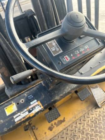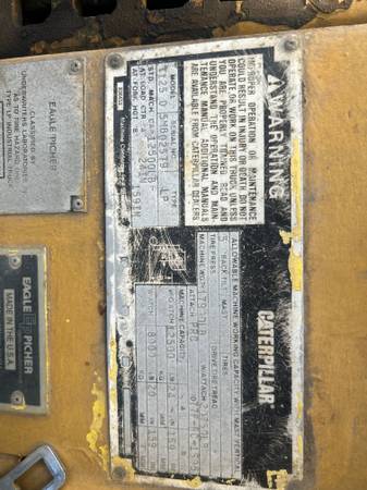 2001 Caterpillar T125D Forklift with Side shift and Single Double Multi Pallet Attachment dual 8'/96" forks, low hours serviced quarterly new tires dual propane lpg 10-gallon tanks. 2 speed auto transmission forward and reverse. 4-cylinder Perkins engine. 15k obo