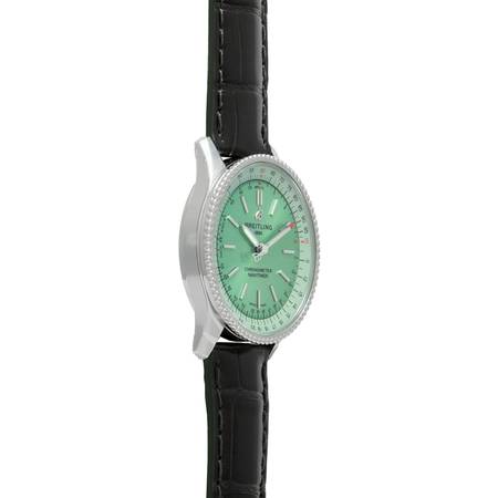 Model # A17395361L1P1 MSRP $5,350 Comes with Breitling Original Box, Hangtag, QuickStart Manual & Breitling Warranty Card Automatic Movement, Mint Green Dial, Steel Beaded Bezel, 35mm Steel...