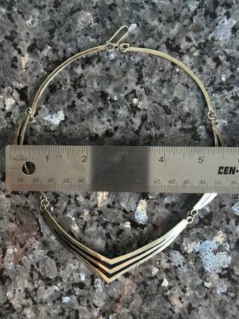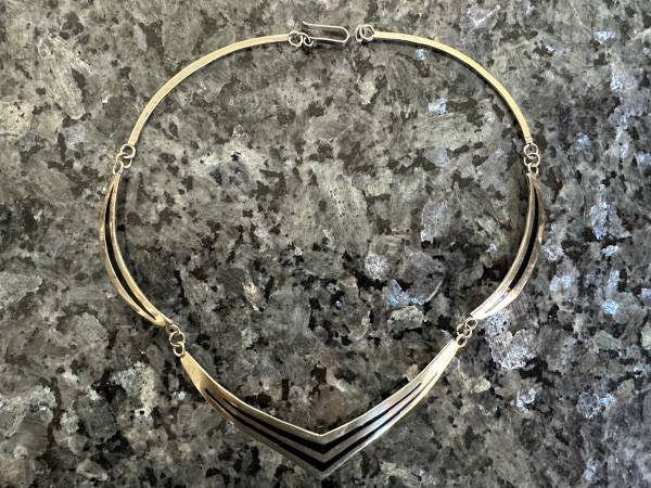 To the best of our recollection, this necklace was purchased around 1990 on a trip to Mexico but it has no stampings to indicate silver content (for example, 925) or where it was made.