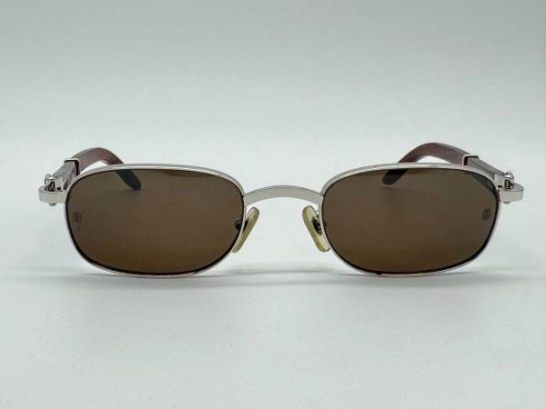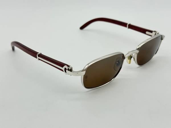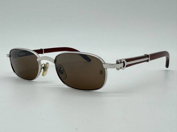 FOR SALE IS A 100% AUTHENTIC CARTIER GIVERNY VINTAGE BUBINGA WOOD SUPER RARE SQUAREISH OVAL SUNGLASSES PLATINUM FINISH METAL.THEY COME WITH THE CARTIER BLACK HARD CASE, CLEANING CLOTH AND THE BOOK OF AUTHENTICATION.THE GLASSES ARE IN GREAT CONDITION WITH VERY MINIMAL WEAR AS YOU CAN SEE IN THE REAL PICTURES.IT IS ALMOST IMPOSSIBLE TO FIND ONE OF THESE IN THIS CONDITION.METAL IS THEY HAVE BEEN SITTING IN THE CASE FOR YEARS.USED TO RETAIL FOR $2750 IN 1992.DIMENSIONS ARE 53-22-140.YOU WON'T SEE THESE EVERY DAY AND YES YOU ARE GOING TO GET LOTS OF COMPLIMENTS WEARING THESE.LENSES ARE THE ORIGINAL ONES THEY CAME WITH IN BROWN WITH PROTECTION 3.THEY ARE IN GREAT CONDITION WITH 1 OR 2 MINOR SPOTS BUT WON'T AFFECT THE VIEW AT ALL.WOOD IS ALSO IN GREAT SHAPE WITH VERY MINIMAL USE.YOU CAN CHANGE EM WITH YOUR OPTICAL LENSES AND MAKE THEM PRESCRIPTION EYEGLASSES AS WELL.AGAIN THESE ARE THE REAL VINTAGE BUBINGA WOODS SO HURRY UP CARTIER LOVERS AND DON'T MISS THE OPPORTUNITY TO OWN THIS PIECE OF JEWELRY.IT IS A REAL COLLECTIBLE ITEM AND WILL GO FAST.IF YOU ARE IN THE LOS ANGELES AREA YOU CAN MEET AT MY OFFICE IN HOLLYWOOD FOR PICK UP.CALL OR TEXT AT 818 209 FOUR444
