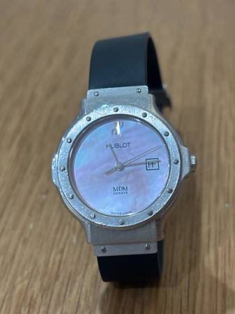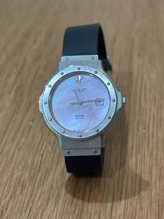 Great condition women’s hublot small faced pink pearl watch. Classic