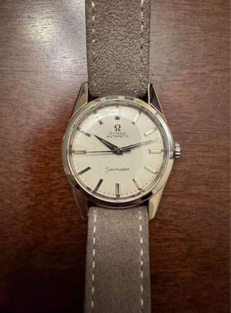This 1962 Omega Seamaster Reference 14700 SC-62 was professionally serviced and refurbished with a watch maker in Fresno out of Ara Karkazian Jeweler’s. It was serviced in August of 2024 and runs extremely well. As well as the full service, it got a new authentic omega crystal, and a new case back and crown gasket. I have all the paperwork and a time grapher receipt. This watch will come with an authentic omega box, 3 straps-co straps, and one aftermarket beads of rice bracelet that has been fit to the watch. It is in practically brand new shape, and is a 34 mm case. Attached at the end are the pictures of before the overhaul, and when I first bought it in 2020. 1000 obo