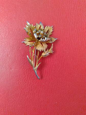The gold-tone Gold-tone Vintage Flower Broche is in good vintage condition with a secure pin clasp, making it a classic accessory.