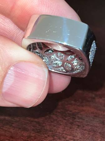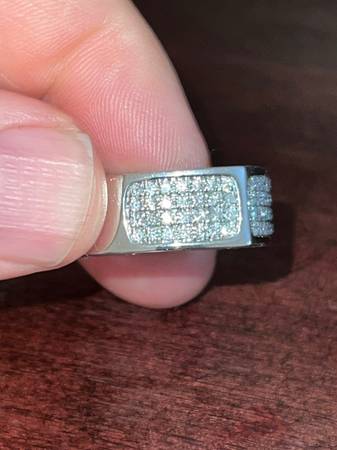 This is size 9 or 10 unsure, selling for a friend and I did not check exact size and it’s for men’s round brilliant diamond very clean diamonds and you won’t find this ring anywhere else.