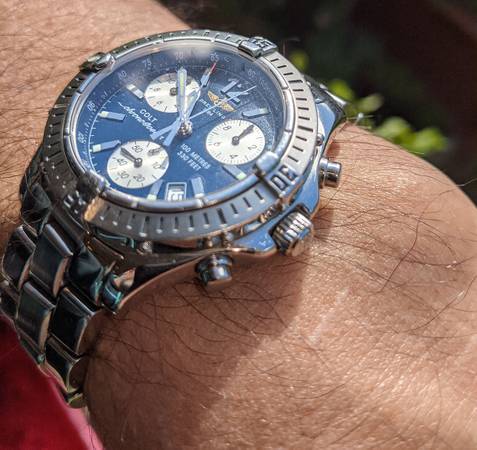 Offered for your consideration: BREITLING Colt Chrono Ocean Chronograph, reference number A53350 Watch Stainless Steel quartz movement. The watch is in excellent condition and keeps excellent time. The diameter without the crown 38mm, with 41mm, it will fit a 7" (medium size) wrist. I am pretty sure the pictures will tell the rest. If interested please contact at show contact info